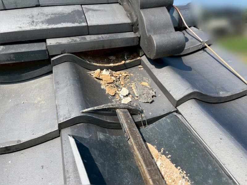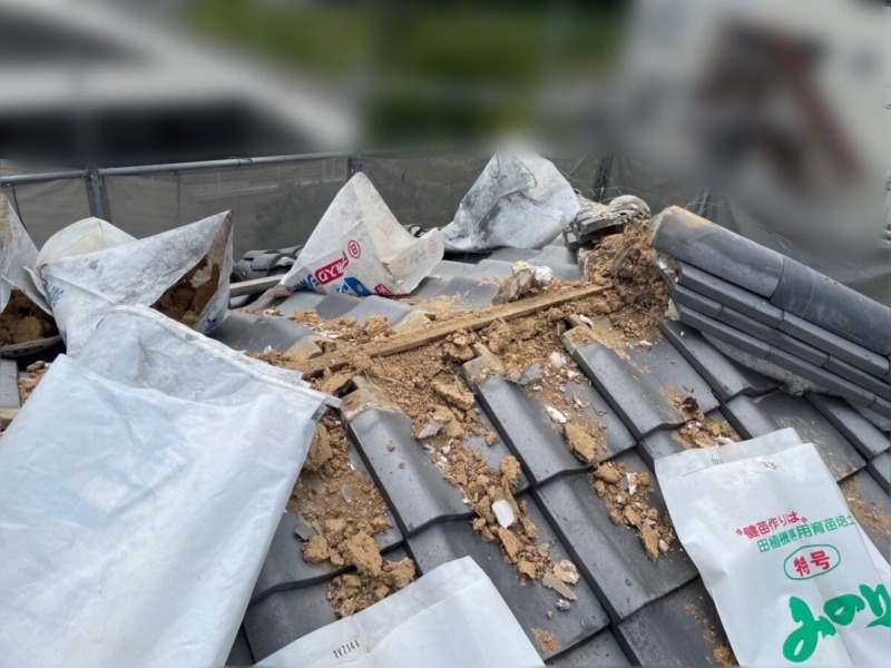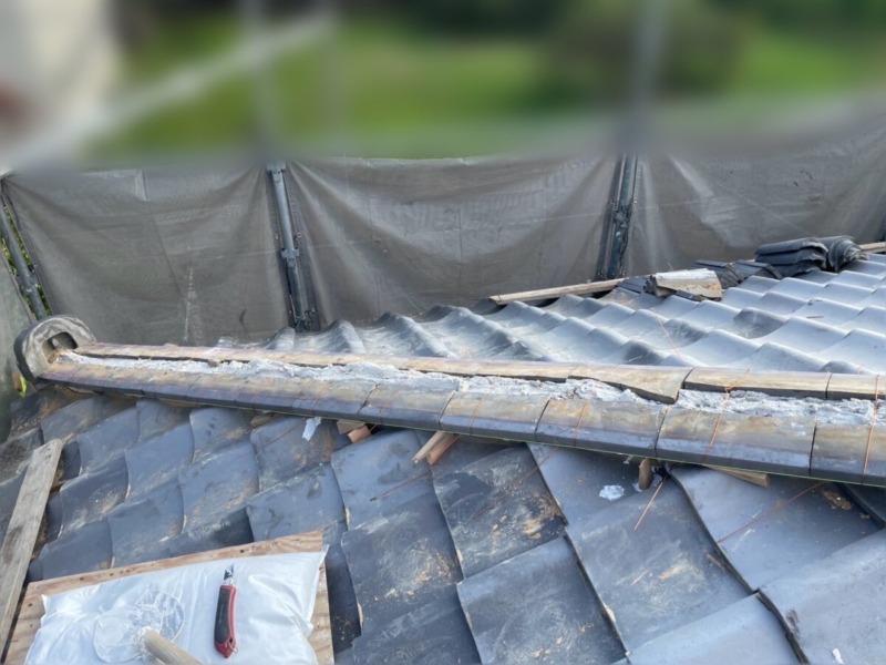 施工事例 棟部積み直し工事 | 坂祝町 施工内容 棟部積み直し工事 離れ 漆喰剥がし塗り工事 母屋 都市 坂祝町 施工箇所 屋根 リフォーム期間 10日 施工前 棟部劣化状況です。 無料診断結果 棟部劣化状況です。瓦のズレも見られました。 棟部劣化状況です。 漆喰が劣化していました。 漆喰劣化状況です。 結束線劣化状況です。 施工中 棟部を解体していきます。 土は使用せず、南蛮漆喰にて棟部を積み直していきます。 漆喰を剥がしていきます。 漆喰を塗ってきます。 結束線を交換していきます。 施工後 完成です。