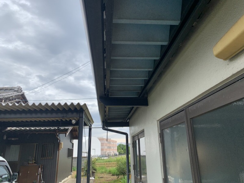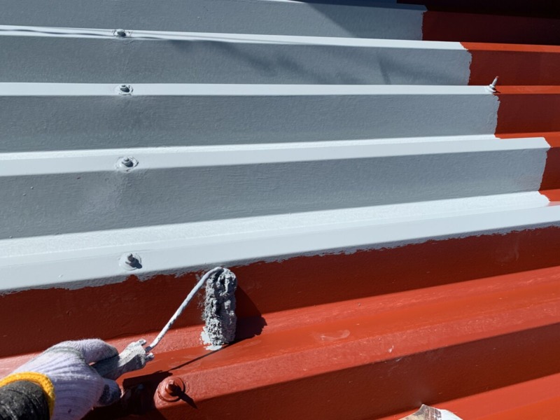 屋根の上塗り1回目です。ケレン後錆止めを塗り上塗りを塗っていきます。
