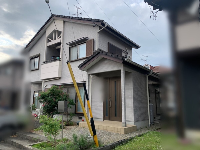 施工事例 屋根・外壁塗装工事 | 美濃加茂市 施工内容 屋根・外壁塗装工事 都市 美濃加茂市 施工箇所 屋根・外壁 リフォーム期間 15日 施工前 外壁劣化状況です。経年劣化により、色褪せなどが見られました。 無料診断結果 外壁劣化状況です。 経年劣化による、チョーキングの発生が見られました。チョーキングは、紫外線などにより、塗料の樹脂分と顔料分が分離し顔料が浮き出てくる現象を言います。塗膜が劣化しているサインです。 ひび割れ発生状況です。 シーリングのひび割れが見られました。シーリングは紫外線に弱くまたシーリングに含まれる可塑剤と呼ばれる揮発性の薬品の寿命により、ひび割れや硬化などの劣化が起きますので、メンテナンスが必要になります。 屋根劣化状況です。コケの発生なども見られました。 施工中 高圧洗浄でチョーキング・汚れ・コケなどをしっかりと洗っていきます。高圧洗浄を丁寧に行わないと仕上げが悪くなったり、耐久性が悪くなるため、注意が必要です。 シーリング工事です。既存のシーリングを撤去してプライマーを塗布し、シーリングを打設していきます。 外壁の下塗りです。下塗りは、素材と上塗りの密着を良くさせるためにとても重要な役割となります。 外壁の上塗り2回目です。ムラが出ないように、均一に均しながら塗っていきます。 屋根の上塗り1回目です。たっぷりと塗っていきます。 施工後 完成です。