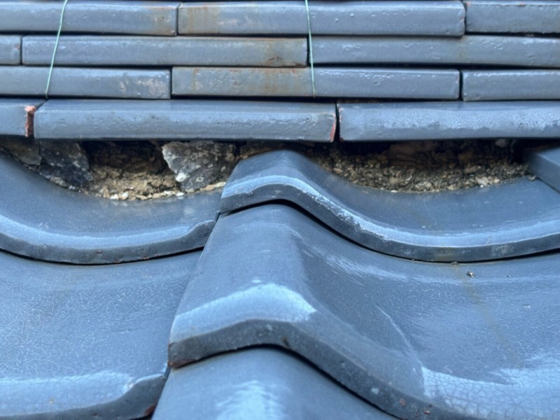 棟部劣化状況です。棟部から雨漏りしていました。