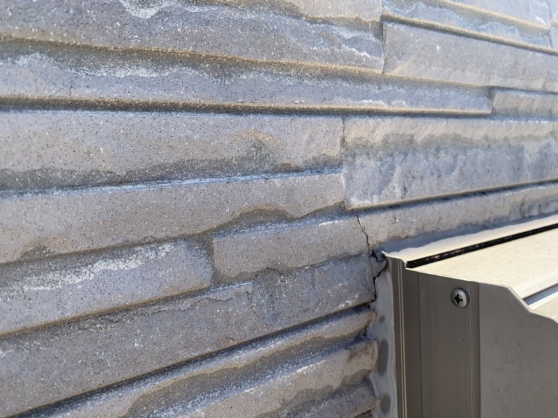 シーリングのひび割れが見られました。シーリングは紫外線に弱くまたシーリングに含まれる可塑剤と呼ばれる揮発性の薬品の寿命により、ひび割れや硬化などの劣化が起きますので、メンテナンスが必要になります。