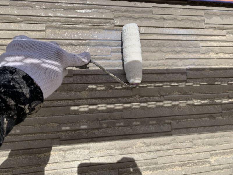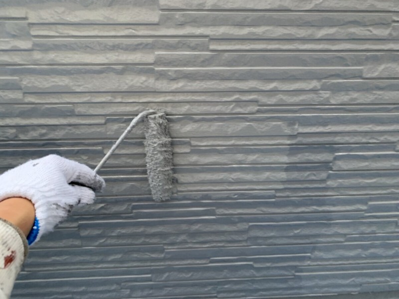 外壁の下塗りです。下塗りは、素材と上塗りの密着を良くさせるためにとても重要な役割となります。
