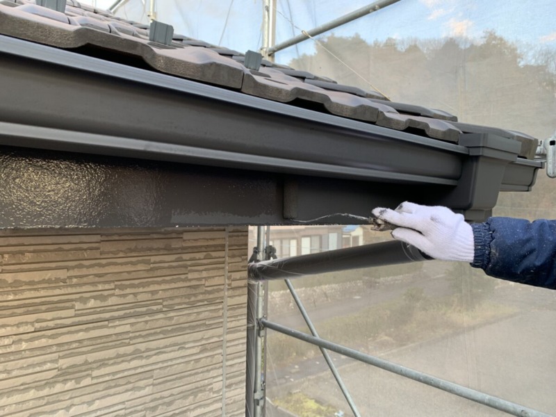 付帯部の上塗り1回目です。鉄部には、錆止めを塗って上塗りを2回塗っていきます。