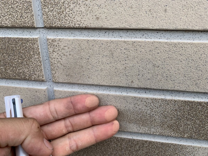経年劣化による、チョーキングの発生が見られました。チョーキングは、紫外線などにより、塗料の樹脂分と顔料分が分離し顔料が浮き出てくる現象を言います。塗膜が劣化しているサインです。