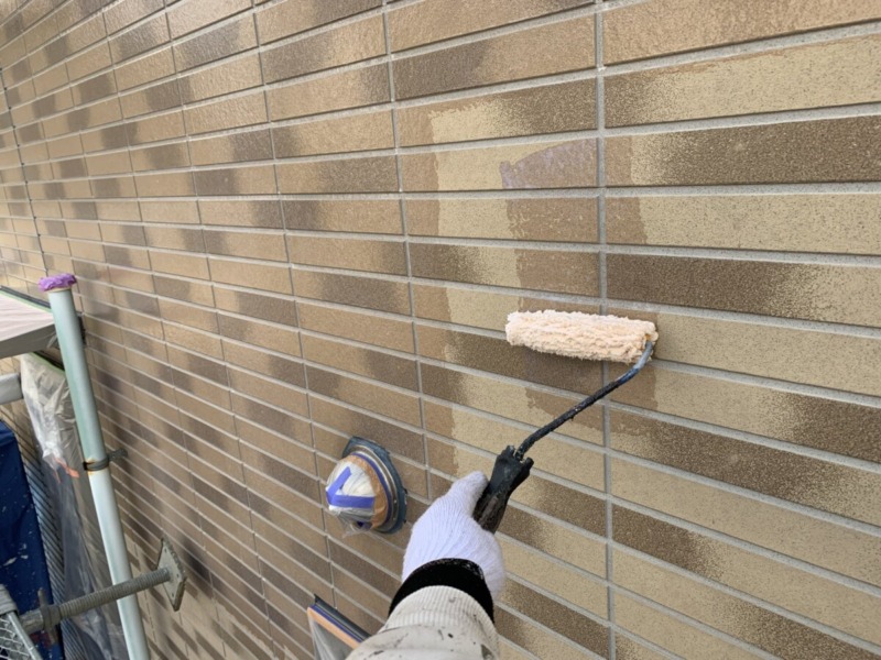 外壁下塗り状況です 密着を良くするためにとても重要です。