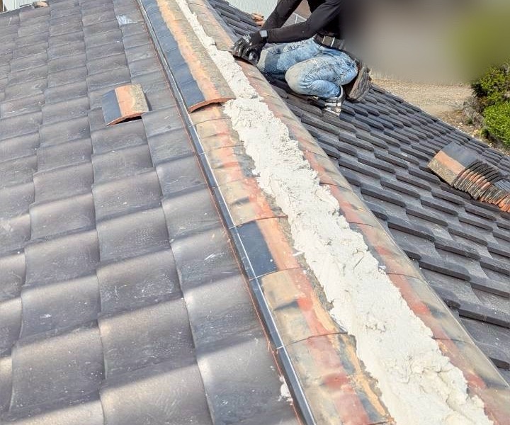 施工事例 棟部積み直し工事 | 関市 施工内容 棟部積み直し工事 都市 関市 施工箇所 屋根 リフォーム期間 6日 施工前 棟部劣化状況です。漆喰の剥がれや結束線の切れなどが見られました。 無料診断結果 棟部劣化状況です。結束線が切れています。 棟部劣化状況です。 棟部劣化状況です。 棟部劣化状況です。 棟部劣化状況です。 施工中 既存の棟部を解体していきます。 土は使用せず、南蛮漆喰にて積み直していきます。 棟部積み直し状況です。 棟部積み直し状況です。 棟部積み直し状況です。 施工後 完成です。