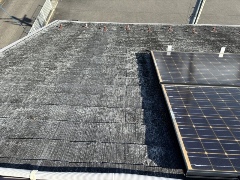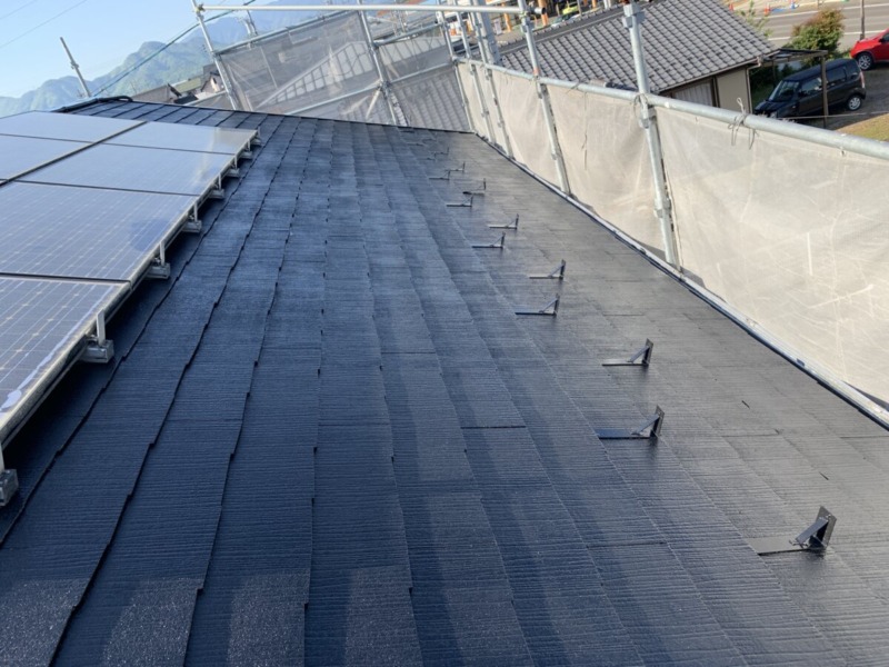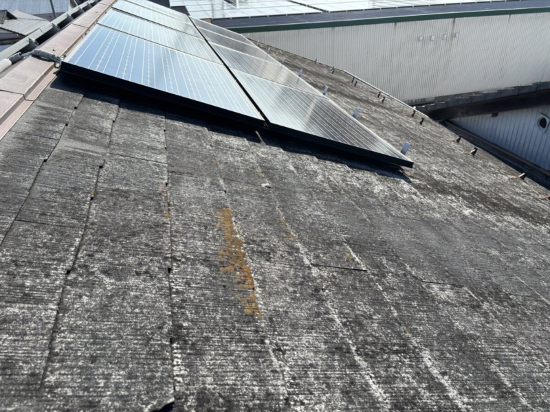 施工事例 屋根塗装工事 | 関市 施工内容 屋根塗装工事 一部屋根カバー工事 都市 関市 施工箇所 屋根 リフォーム期間 5日 施工前 カラーベスト劣化状況です。塗膜の防水性は無く、一部雨漏りしていました。 無料診断結果 カラーベスト劣化状況です。 カラーベスト劣化状況です。 カラーベスト劣化状況です。 カラーベスト劣化状況です。 カラーベスト劣化状況です。 施工中 屋根の高圧洗浄をしていきます。綺麗に洗っていきます。 屋根の下塗りをしていきます。 塗料で隙間が埋まらないように、タスペーサーを設置していきます。 屋根の上塗り2回目です。たっぷりと塗っていきます。 一部雨漏りしている箇所は屋根をカバーしていきます。 施工後 完成です。
