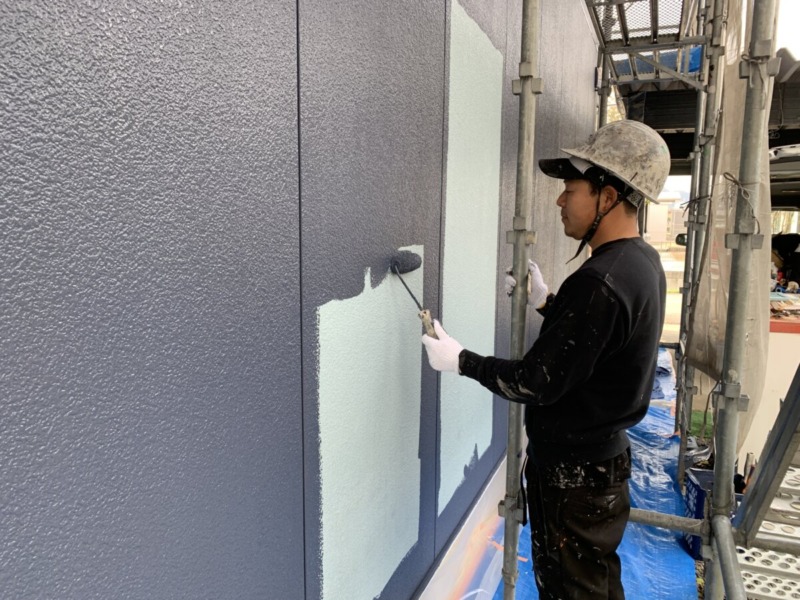 施工事例 外壁塗装工事 | 関市 施工内容 外壁塗装工事 都市 関市 施工箇所 外壁 リフォーム期間 15日 施工前 外壁劣化状況です。色褪せやひび割れがありました。 無料診断結果 経年劣化による、チョーキングの発生が見られました。チョーキングは、紫外線などにより、塗料の樹脂分と顔料分が分離し顔料が浮き出てくる現象を言います。塗膜が劣化しているサインです。 ひび割れ発生状況です。外壁を固定している釘周りから割れていました。 外壁コケ発生状況です。 シーリングのひび割れが見られました。シーリングは紫外線に弱くまたシーリングに含まれる可塑剤と呼ばれる揮発性の薬品の寿命により、ひび割れや硬化などの劣化が起きますので、メンテナンスが必要になります。 付帯部劣化状況です。 施工中 外壁の高圧洗浄です。細部まで綺麗に洗い流していきます。 既存のシーリングを撤去し、プライマーを塗ってからシーリングを打設していきます。 外壁下塗り状況です。密着を良くするためにとても重要です。 外壁の上塗り1回目です。たっぷり塗っていきます。 外壁の上塗り2回目です。ムラが出ないように、均一に均しながら塗っていきます。 施工後 完成です。